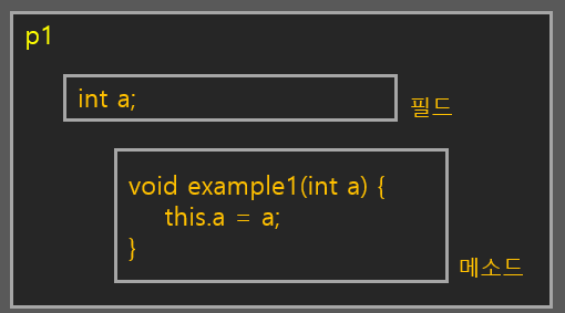 - 메소드의 매개변수 (parameter)값이 필드 값을 변경할 때 같은 이름을 사용하기 위해 사용됨